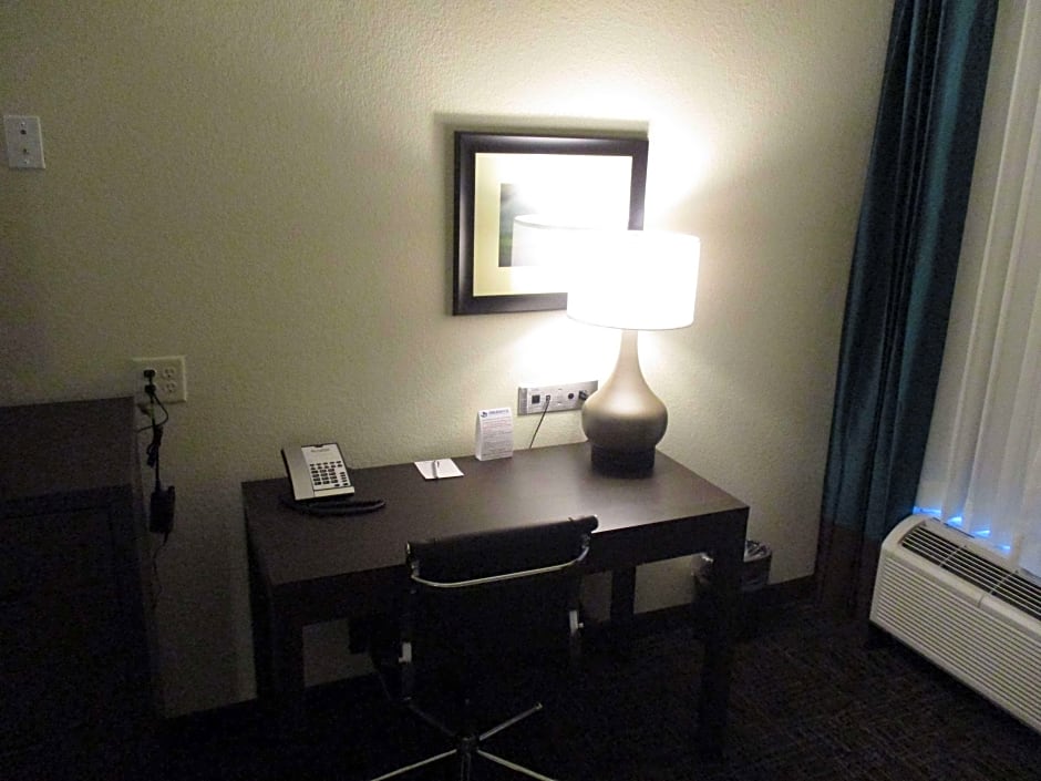 This accessible room features a flat-screen TV, microwave and coffee maker. The bathroom comes with a hairdryer and a roll-in shower.